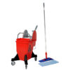 Galeata din polipropilena cu doua compartimente, (in conformitate cu regulile de igiena HACCP), pe roti, cu dispozitiv de stoarcere a mopurilor Kentucky.